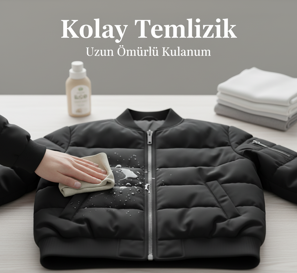 Suya ve neme dayanıklı yapısı sayesinde kısa sürede kurur. Yağmurlu günlerden sonra dolabınıza asmanız yeterli — birkaç saat içinde yeniden kullanıma hazır hale gelir.