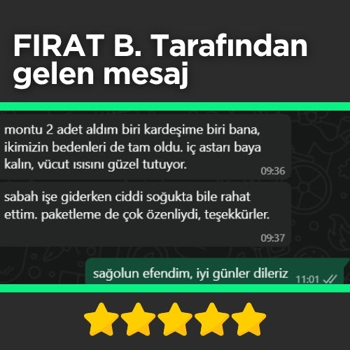 Montlarımızın üç kat koruma sistemi, soğuk ve rüzgarlı havalarda konfor seviyesini önemli ölçüde yükseltti.